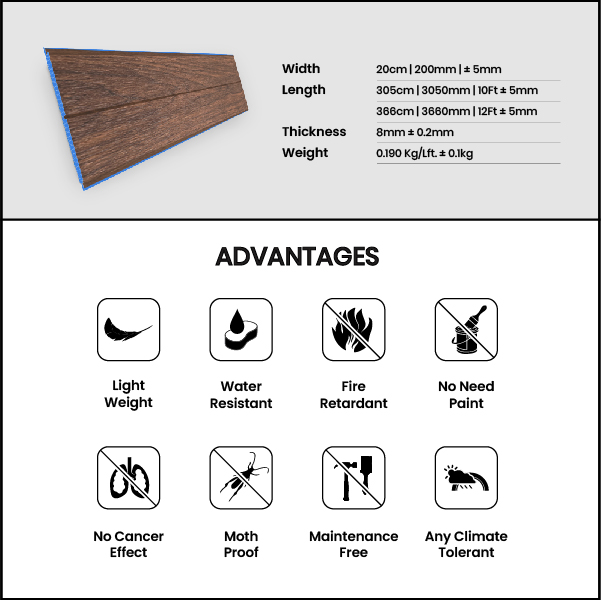 The iPanel HEAVY-B Ceiling Sheet series is designed for strength, sophistication, and long-term performance. With a premium 7.5mm thickness and enhanced durability, it is ideal for high-traffic commercial and residential spaces. Available in rich finishes such as White Wood, Gray Wood, Danish Teak, Fine Wood, Nadun, Maple, Thai Teak, Coffee Bean, Kalluwara, and Africa Teak — the series delivers waterproof, fire-retardant, insect-resistant, and low-maintenance performance. Its tongue-and-groove system ensures precise and hassle-free installation, making it the go-to ceiling solution for architects and interior designers seeking elegance that lasts.